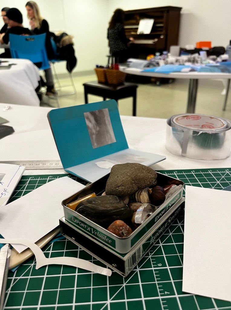 Les mini carnets réalisés intégreront une œuvre collective présentée dans l’exposition Entre terre et CIEL à la Galerie du Collège d’Alma.