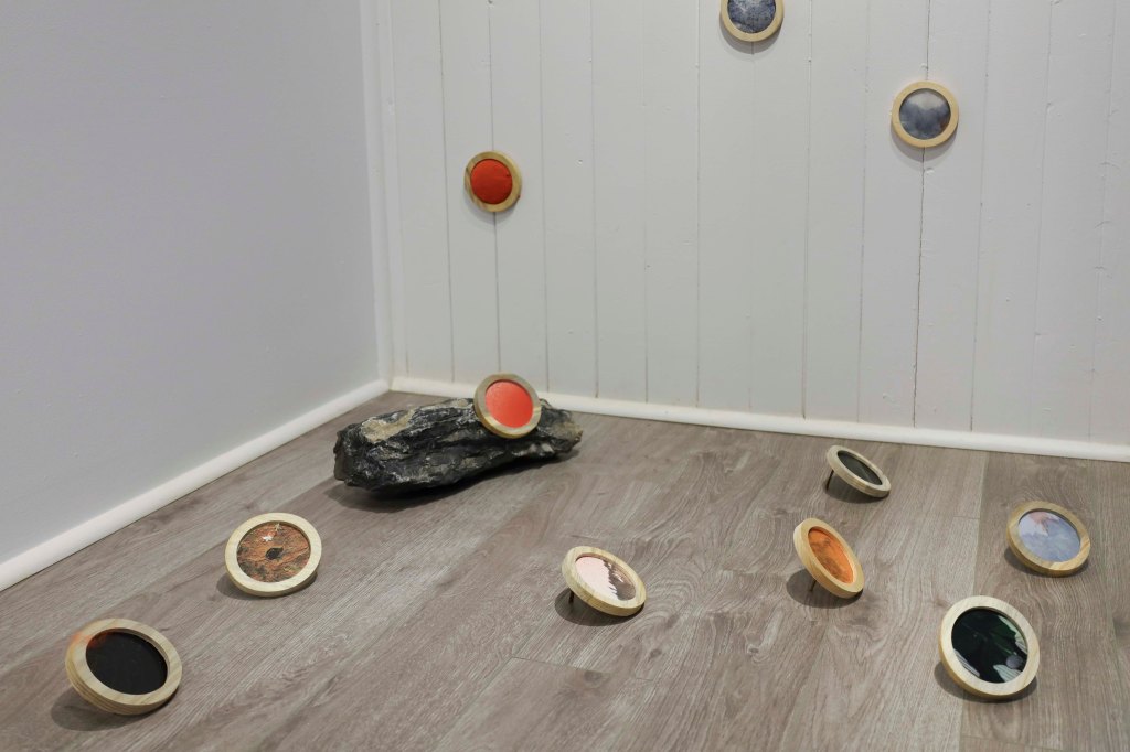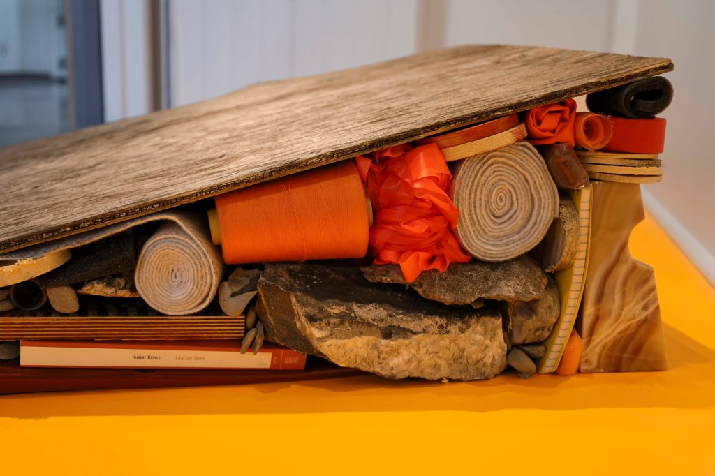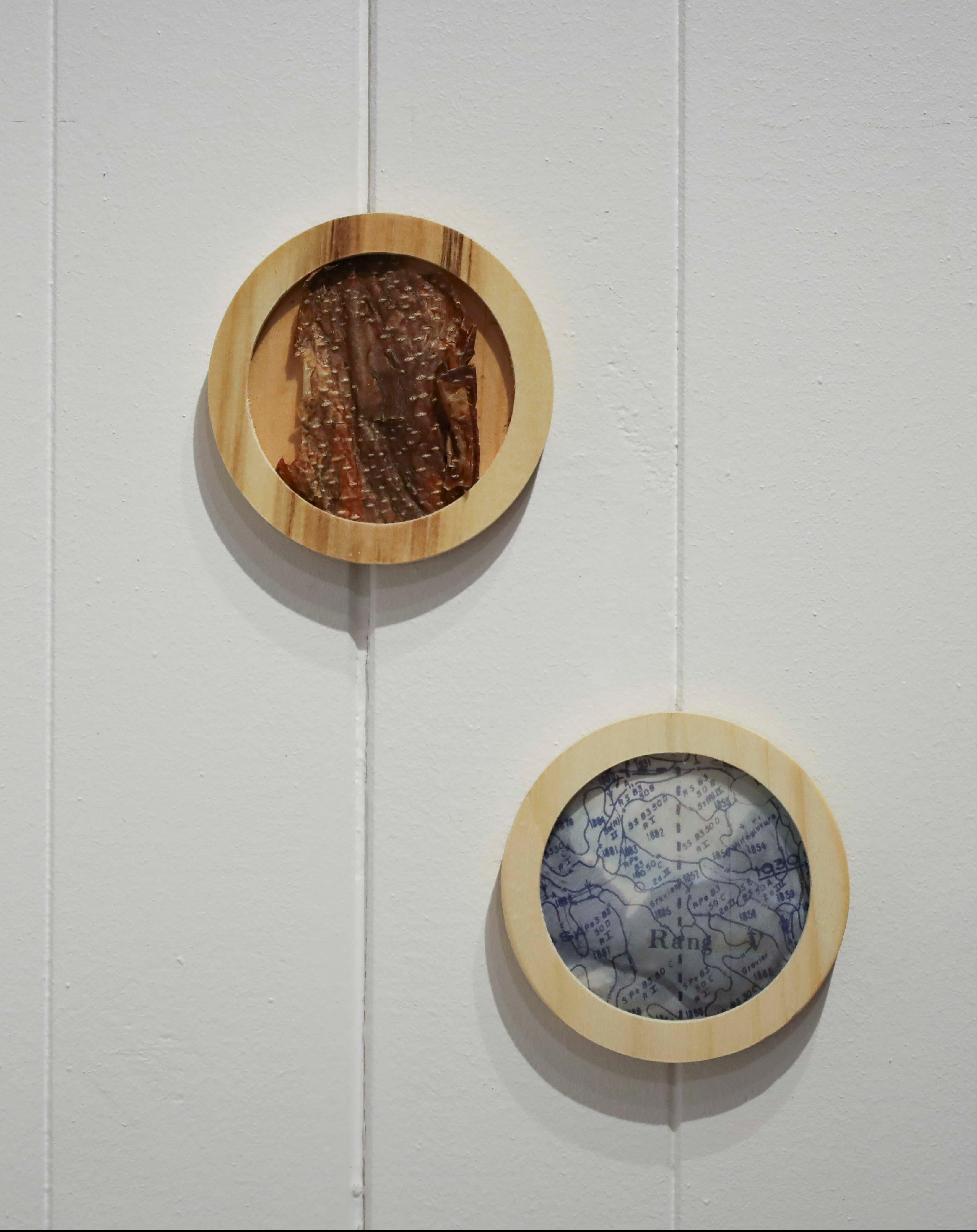 Sur la terre à bois du Lac Hibou, située au Lac-Saint-Jean et gardée depuis plus de 20 ans par Louis et Christiane, le Club a réalisé plusieurs séjours à différentes saisons en 2020 et 2021. Les artistes y ont entre autres appris à manipuler des instruments de sylviculture, à mémoriser des essences d’arbres, à connaître des notions d’aménagement et de foresterie, mais aussi des faits marquants, des secrets chuchotés entre les arbres, au pied des crans, à la surface du lac, ayant tissé la trame de leur recherche. Celle-ci leur a permis de sonder leur lien de filiation à la forêt, le regard de l’une affectant celui de l’autre. Pour Mariane, il passe par une perception mystérieuse du « bois » dans sa généralité et des anecdotes transmises par sa grand-mère maternelle. Pour Magali, c’est davantage une relation physique et affective envers cette terre familiale et la résonance en elle des forêts qui ont jalonné sa vie depuis l’enfance.